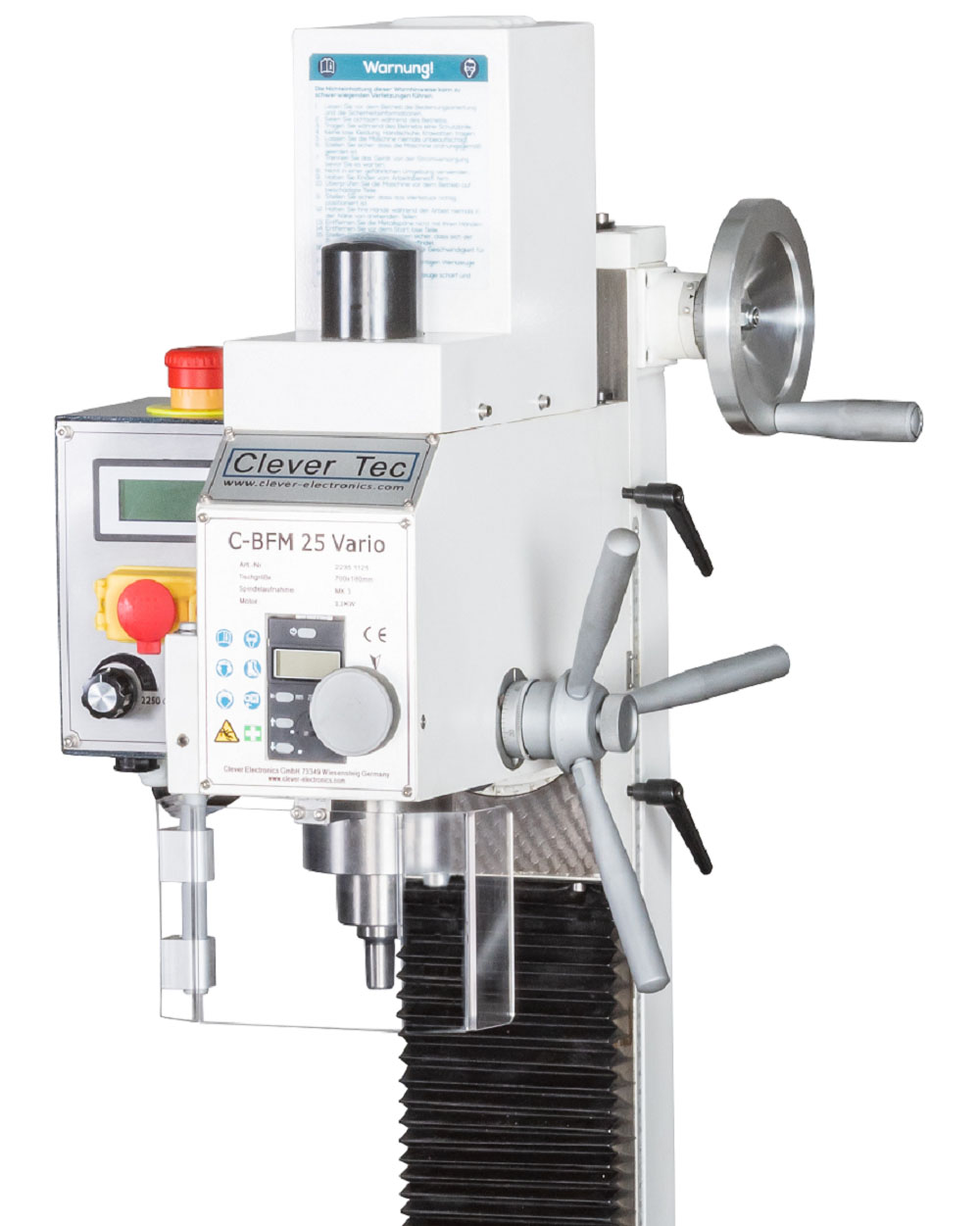 - Pinolen zustellung zum Fräsen über Handrad